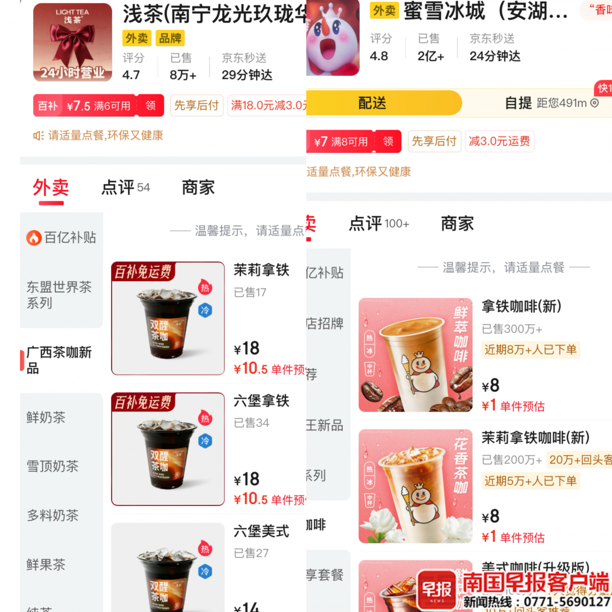 時(shí)下,在蜜雪冰城、益禾堂、本土品牌瑪雅檸茶、淺茶等茶飲門(mén)店,你都能喝到咖啡,甚至是喝到六堡拿鐵、山黃皮美式、茉莉綠茶拿鐵等特色“廣西茶咖”。各色茶飲和水果的清香經(jīng)過(guò)搭配后,在降低咖啡苦澀的口感之余能提升新式飲料的風(fēng)味。而這些別致的飲料正符合年輕人追求新奇的理念。茶飲與咖啡的邊界日趨模糊,飲品行業(yè)互相滲透加速,體現(xiàn)了品牌尋求增長(zhǎng)空間的嘗試,也反映了行業(yè)向精細(xì)化、效率化方向的發(fā)展趨勢(shì)。