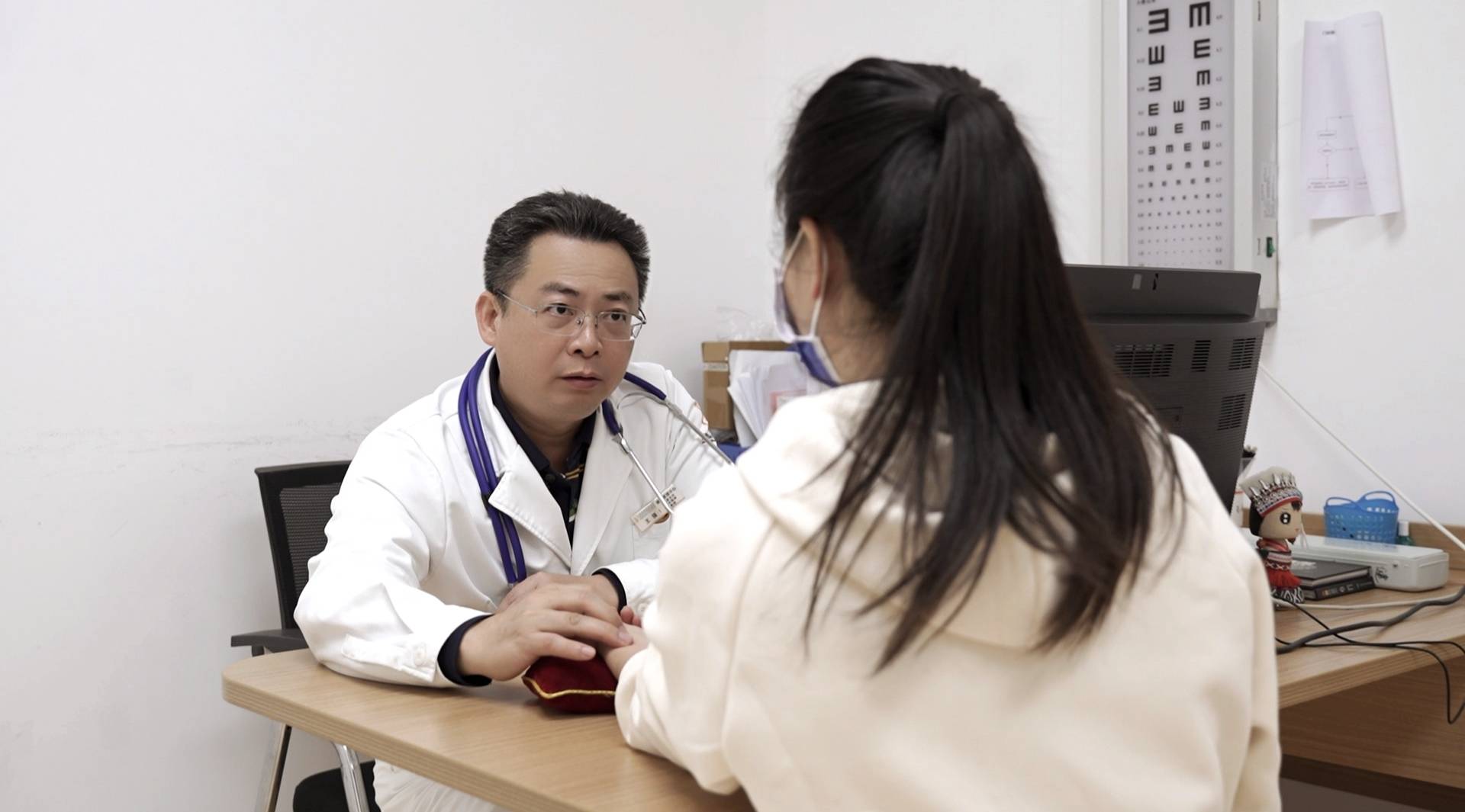 ▲王強(qiáng)在給患者把脈。南國早報(bào)全媒體記者 王讕攝