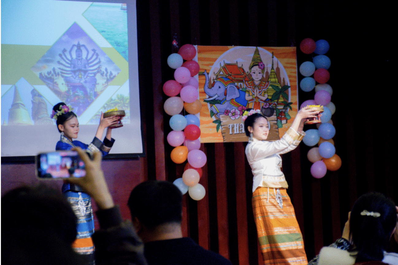 文藝展演環(huán)節(jié)精彩紛呈,將現(xiàn)場氣氛推向一個又一個高潮。外國語學(xué)院2025級泰語專業(yè)學(xué)生帶來的中國古典舞《紅昭愿》,舞姿曼妙、韻味悠長;2024級泰語專業(yè)學(xué)生獻上的“傣迪”舞蹈,活力四射、熱情洋溢,傳遞著對泰國友人的真摯歡迎。泰國留學(xué)生則以極具民族特色的傳統(tǒng)舞蹈《祝福之水》回饋,舞姿舒展、寓意美好。中泰文化在舞臺上交相輝映,每一個精彩瞬間都贏得全場陣陣掌聲。