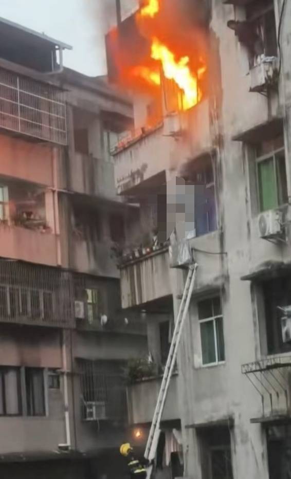 四川一居民樓起火猛烈燃燒,一女子逃生從陽臺墜下