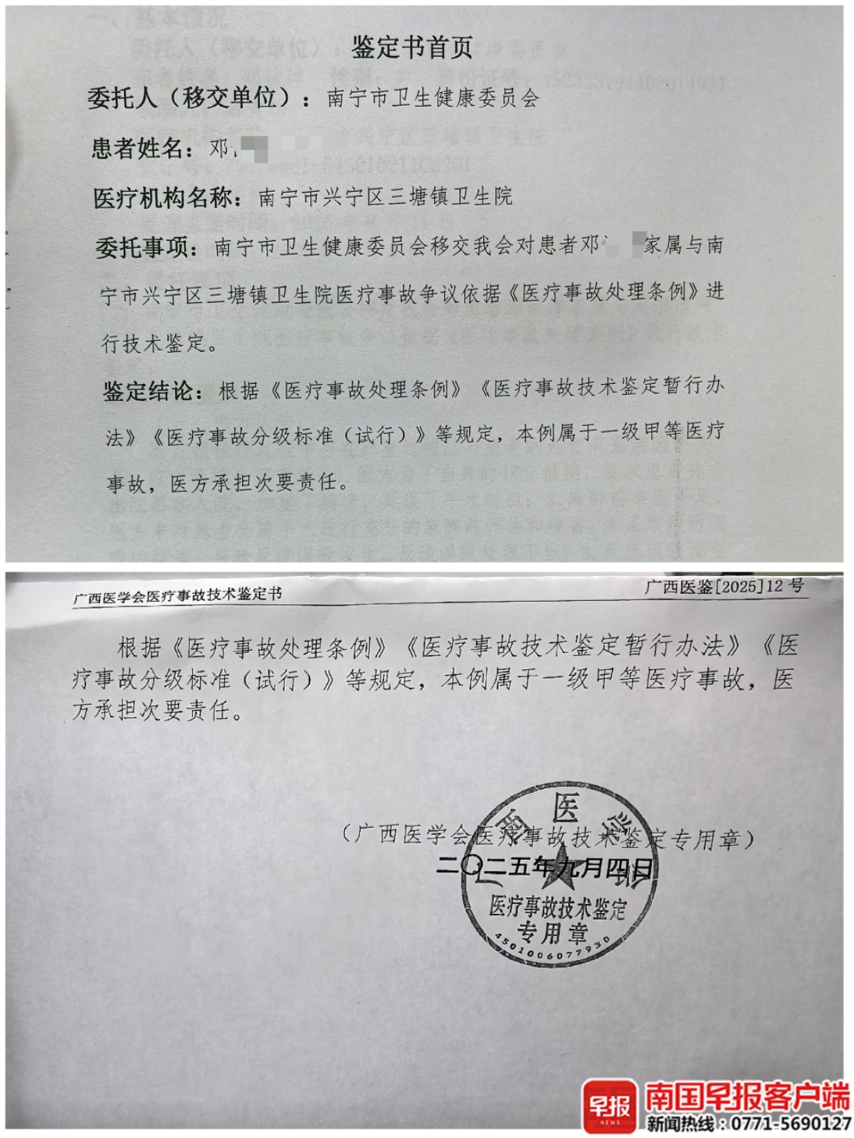 廣西醫(yī)學(xué)會出具《醫(yī)療事故技術(shù)鑒定書》。受訪者供圖