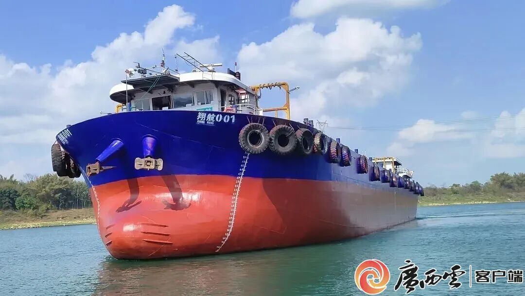 獲得廣西首張經(jīng)平陸運(yùn)河出海的內(nèi)河船舶證書的“翔航001”船。